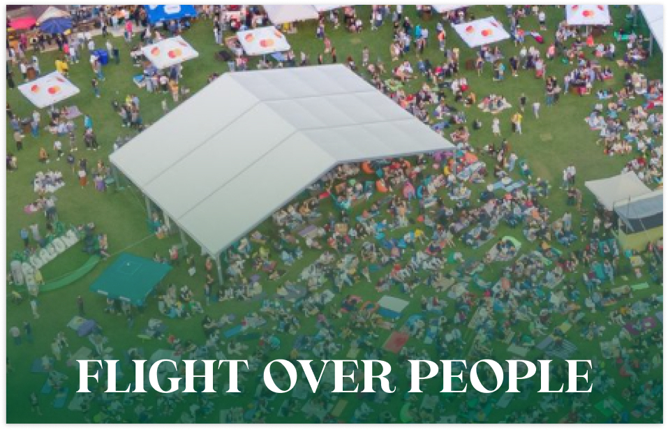 Laws for flight over people be it bystanders in a park, crowds at festivals , or hovering over moving vehicles.