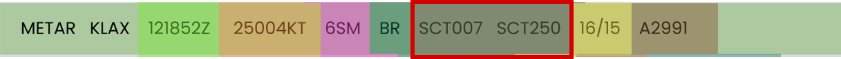 Now let’s apply the formula to the KLAX METAR: SCT007 SCT250