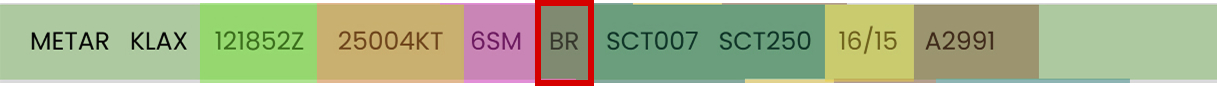 In this case, BR = Mist. There’s moisture in the air reducing visibility, but not as thick as fog.