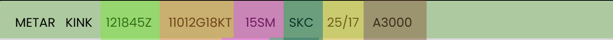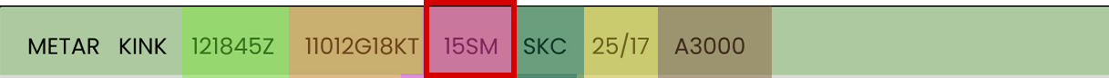 Now you can know the METAR report is broken up by the 1.) Report Type and Airport identifier, 2.) Report Issue Time, and 3.) Current Weather Elements.
