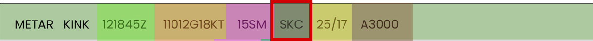 - SKC – Sky Clear – No clouds are present in the sky.