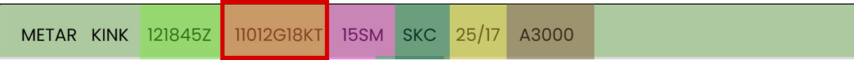 - G18KT – Wind Gust Speed in knots