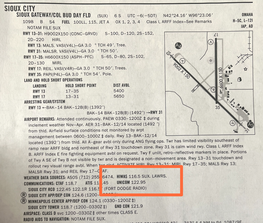 1. (Refer to Figure 79) What’s the UNICOM frequency at Sioux City Airport?