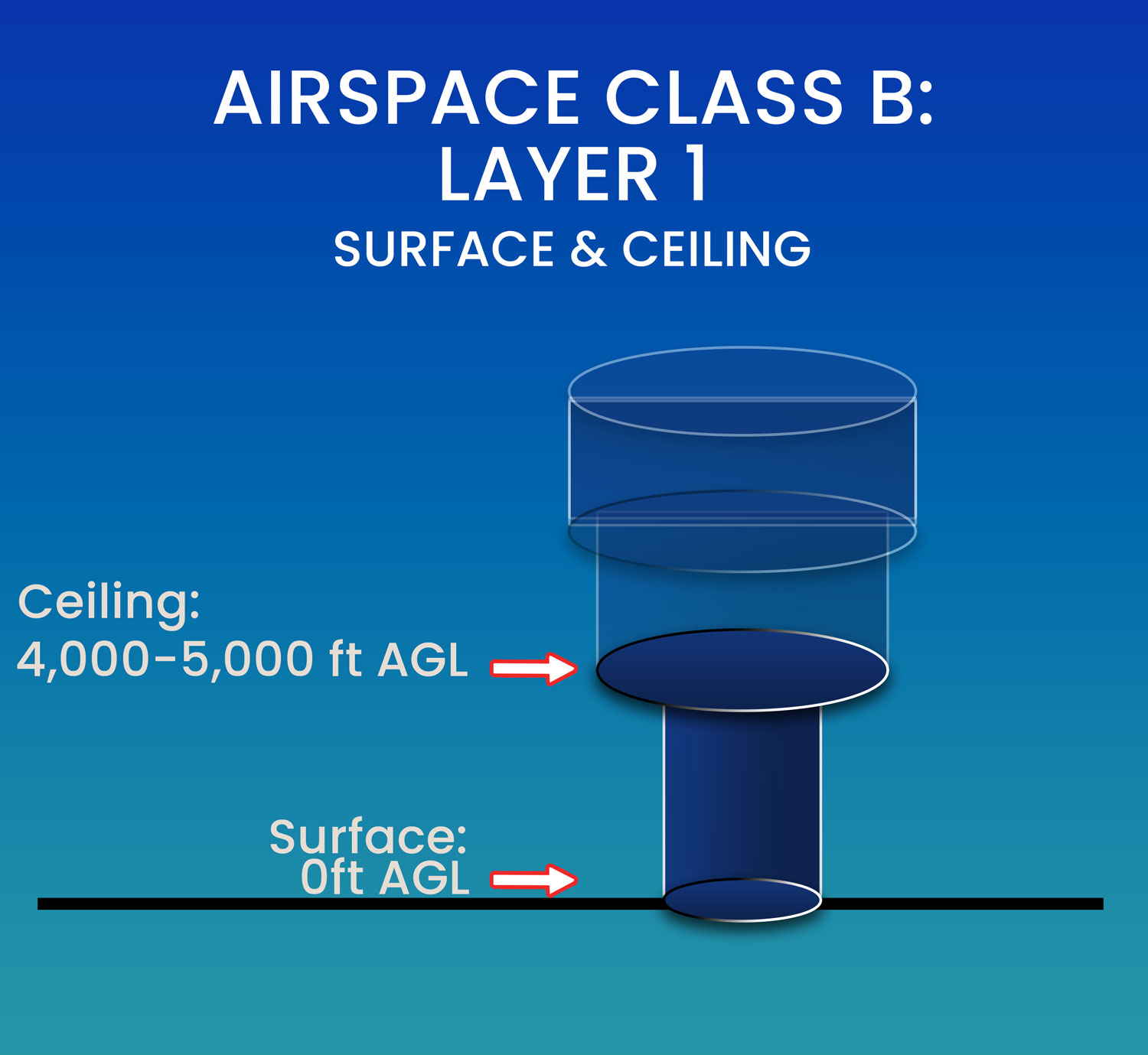 Layer 1 of Class B airspace is the innermost and lowest layer, shaped like a cylinder centered around the airport.