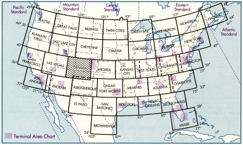 Sectional charts are broken into distinct parts, each representing a particular geographic zone.
