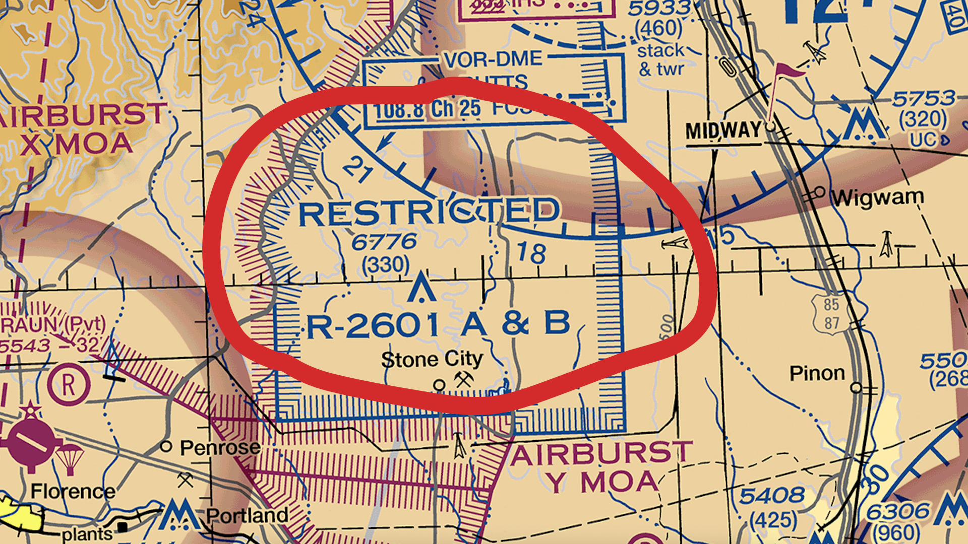 - Special use airspace: Areas such as military operations zones (MOAs), restricted areas, and warning zones.